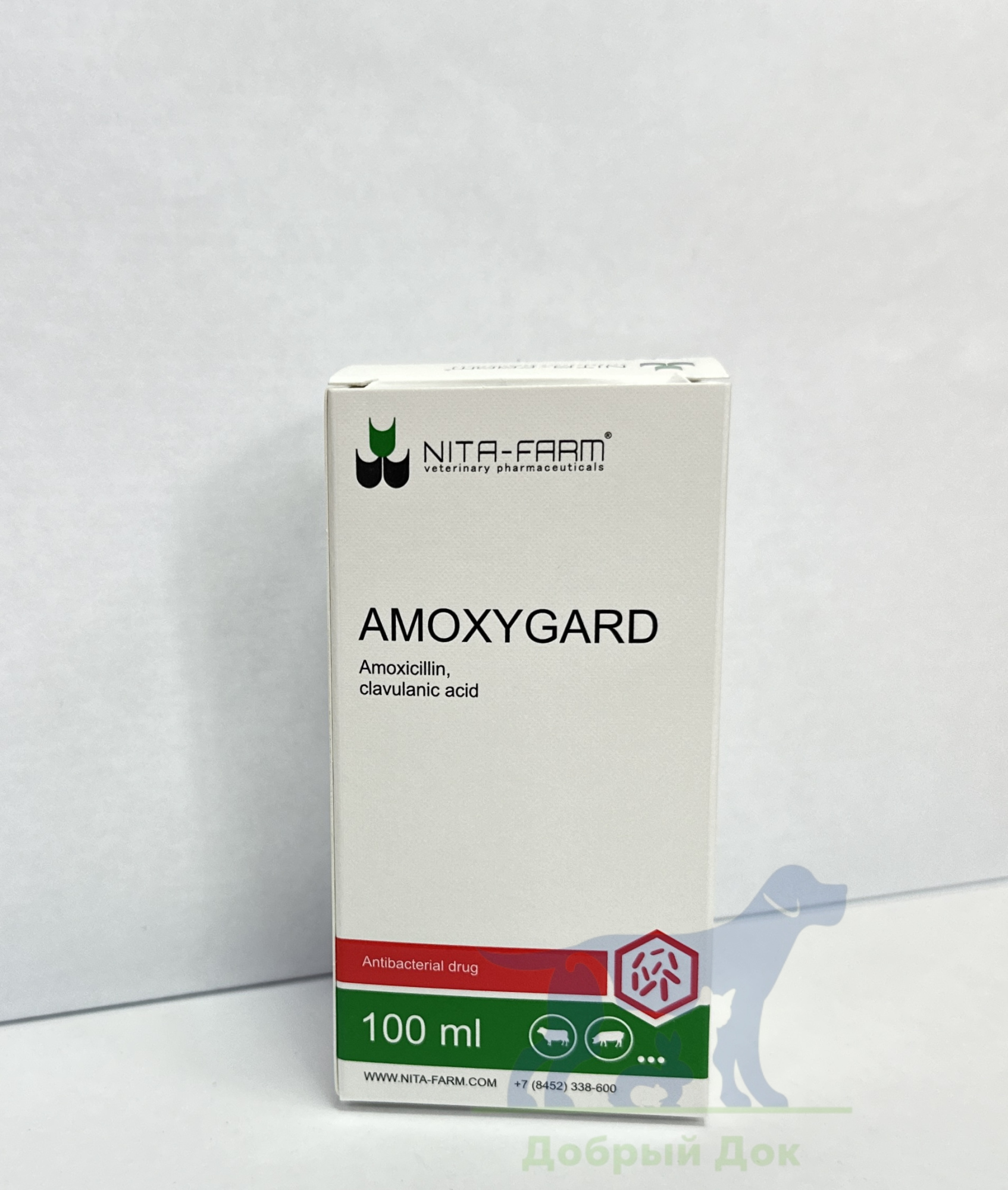 Комбинированный антибактериальный препарат Амоксигард обладает широким спектром бактерицидной активности против большинства грамположительных и грамотрицательных микроорганизмов. Назначается крупному рогатому скоту для лечения респираторных заболеваний бактериальной этиологии, акушерско-гинекологических заболеваний (метритов и маститов), хирургических заболеваний, в том числе инфекций мягких тканей - абсцессов, флегмон; свиньям - для лечения бактериальных инфекций органов дыхания, колибактериоза, послеродовых инфекций у свиноматок (метрит-мастит-агалактия).
