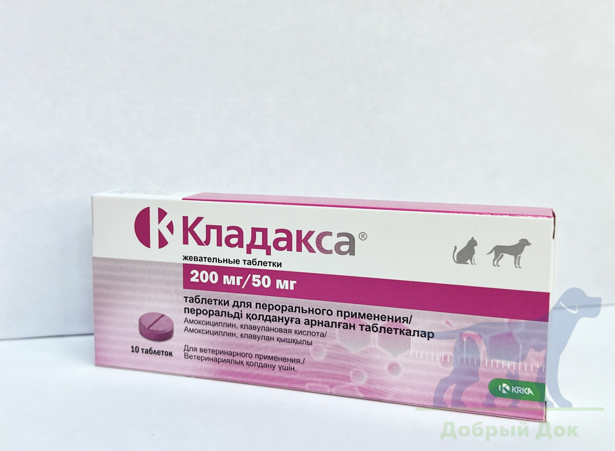 Антибактериальный препарат широкого спектра действия Кладакса, содержащий амоксициллин и клавулановую кислоту от компании KRKA применяется с целью лечения инфекций кожи (включая глубокую и поверхностную пиодерму), мочевыводящих путей, респираторных инфекций, бактериальных энтеритов и других инфекционных заболеваний собак и кошек бактериальной этиологии.