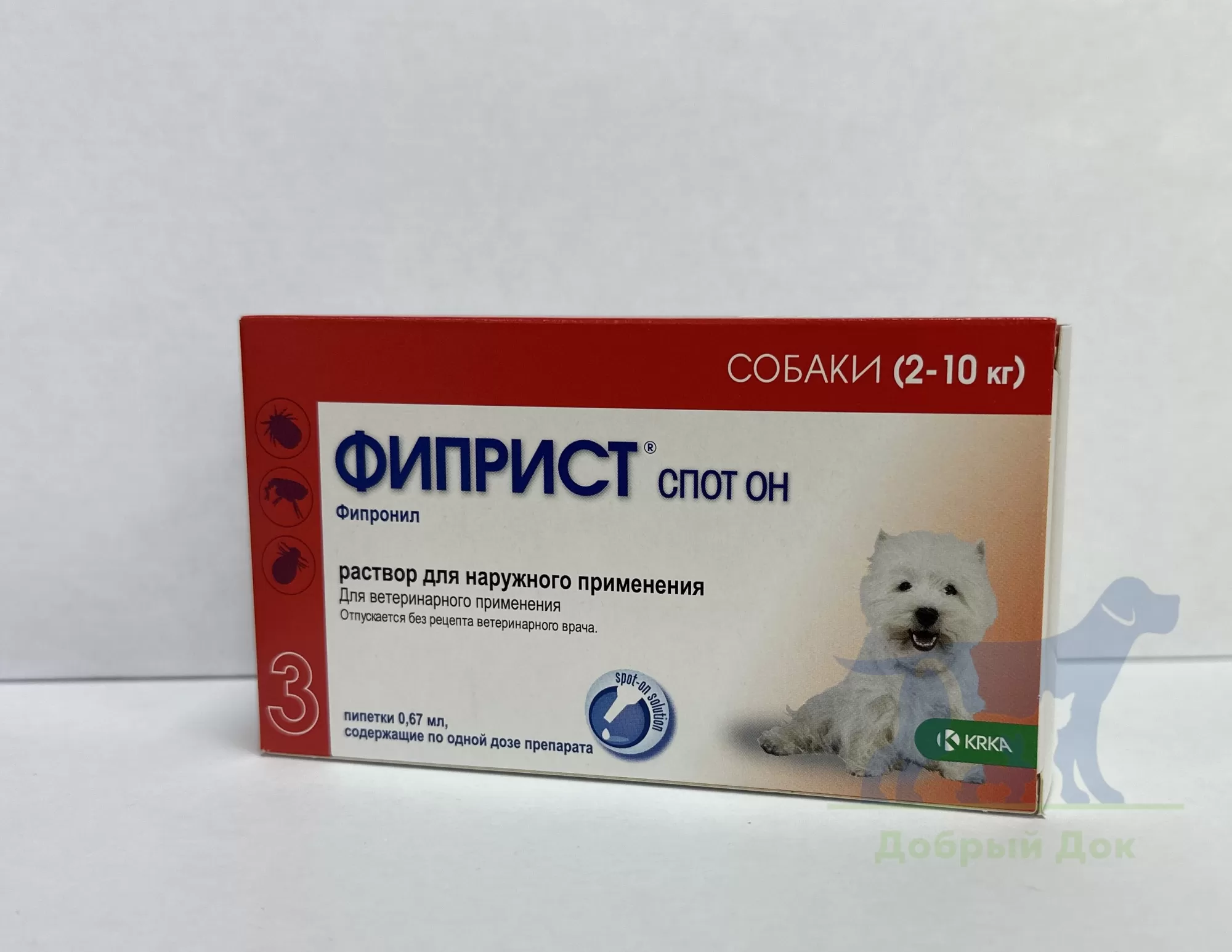Фиприст Спот Он - популярное антипаразитарное средство для собак на основе фипронила от популярного словенского бренда KRKA известно как отличное средство для борьбы и профилактики энтомозов, отодектозе, поражения клещами (иксодовыми, хейлителлами), а также борьбе с аллергическим дерматитом на фоне блошиной инвазии.